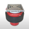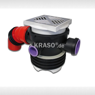 für Flächen ohne Fahrverkehr, 3 Zulaufleitungen, für Grauwasser, herausnehmbarer Rückstauverschluss, integrierter Geruchsverschluss, Schlammeimer und teleskopisch von 30 bis 60 mm höhenverstell- und verdrehbarem Aufsatzstück, zwei Zuläufe DN 50, ein Zulauf DN 70, wahlweise für KG, HT oder KG 2000 Rohre, Schlitzrost 20 x 20 cm, Kunststoff schwarz, Klasse K3, Ablaufleistung: 1,8 l/s