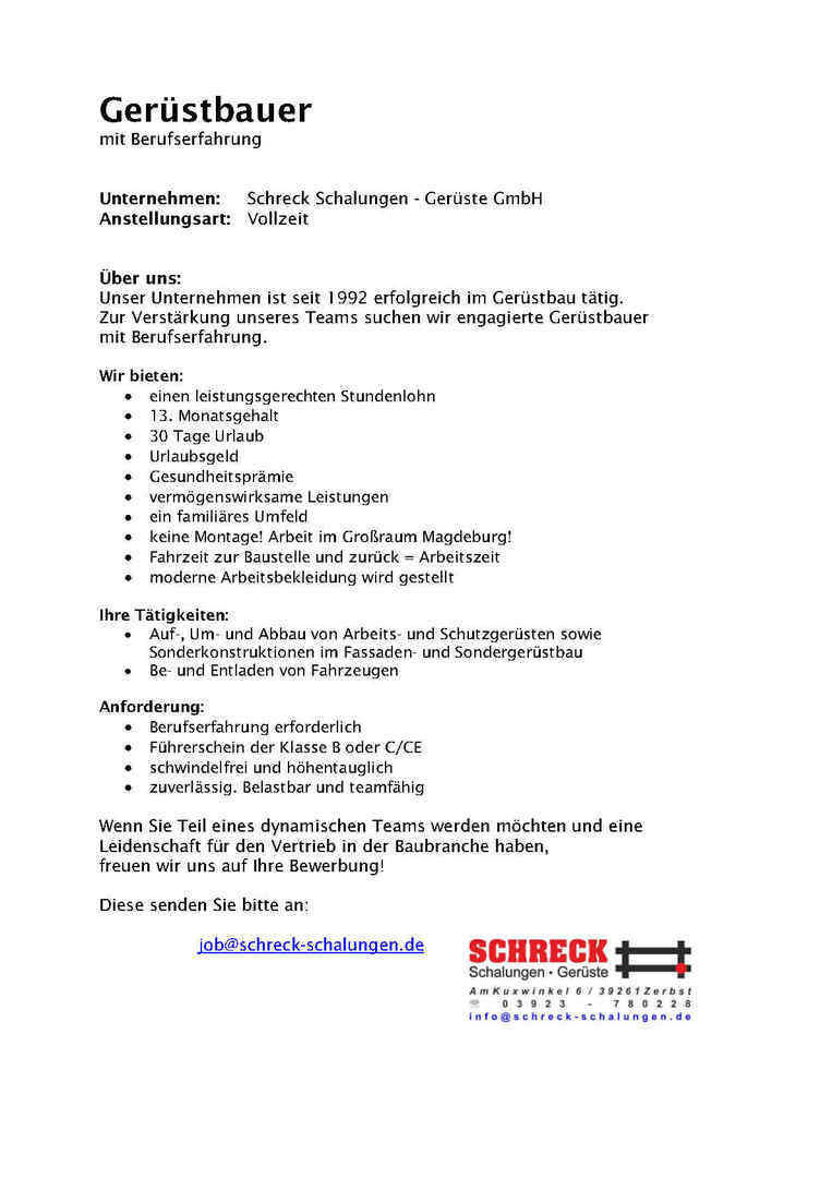Schreck Schalungen - Gerüste GmbH Am Kux-Winkel 6 39261 Zerbst/Anhalt
